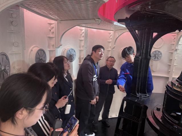 从百年前的煤油灯到如今的现代化照明,从人工值守到规范运维,老铁山灯塔始终坚守航道、守护平安。师生们沿着历史足迹深入参观,全面了解灯塔的建造历程、技术沿革与文化价值,在实地感悟中读懂坚守的意义,厚植家国情怀与人文精神。
