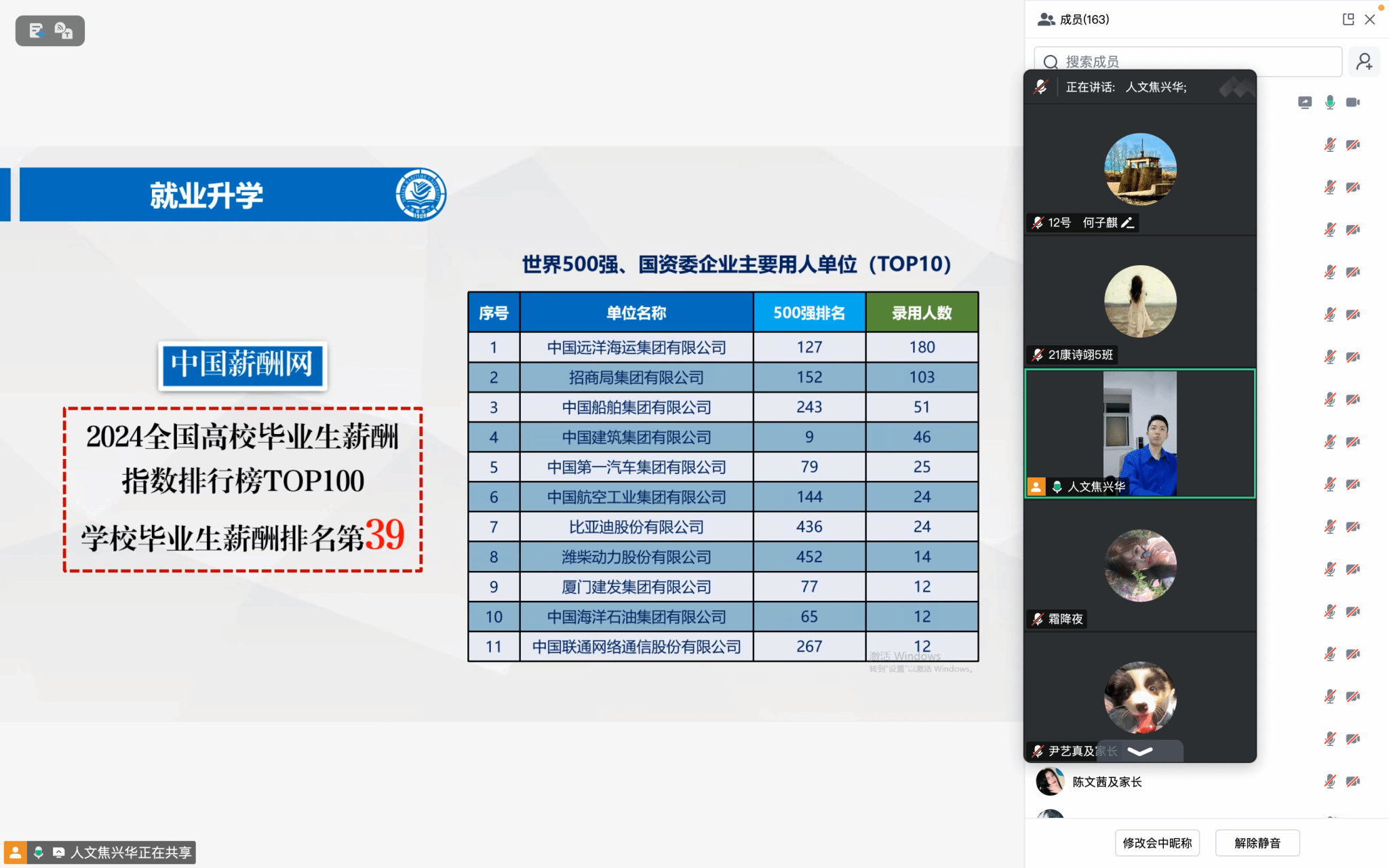 召开2025级本科新生及家长线上见面会,会议由中队指导员焦兴华主持,中队学生及其家长全部参会。