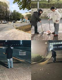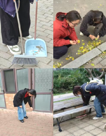 针对校园路面、绿化带等区域,深秋时节,路面上散落着不少落叶,还有随手丢弃的纸屑、零食包装袋,给清洁工作增加了一定难度。第二组同学们手持扫帚、簸箕认真扫地,不放过任何一片落叶、一粒灰尘。他们沿着路面缓缓推进,不放过任何一片落叶、一粒灰尘,将散落的垃圾集中收集后分类投放至垃圾桶。整个清扫过程有条不紊、效率十足,最终让校园路面恢复洁净本色。