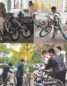 校园停车场及主干道两侧,第一组同学们重点开展扶自行车行动。由于校内人流密集,部分自行车被随意停放、倾斜倒地,甚至占用了人行通道,不仅影响校园美观,还存在通行安全隐患。同学们默契配合,有的弯腰扶起倒地的车辆,有的细心调整车头方向,有的轻轻挪动车辆留出合理间距,按照“车头同向、排列整齐、不占通道”的标准,将一辆辆杂乱停放的自行车有序排列在指定区域,不仅消除了道路通行隐患,更让校园交通秩序焕然一新。