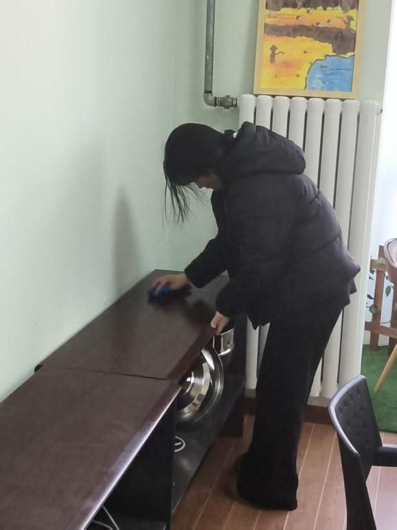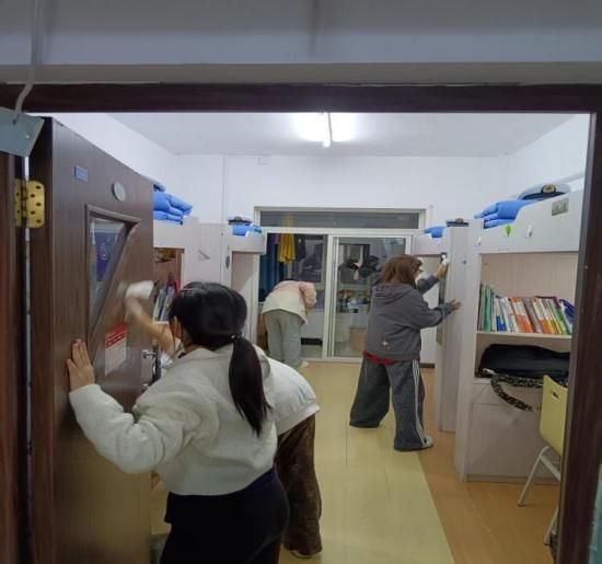 在心理活动室、党员活动室等公共空间内,同学们分工明确、配合默契,对地面、桌面、墙角等区域进行全面清洁。他们认真擦拭窗台、整理书架、归类物品,力求做到“窗明几净、整齐划一”。过程中,同学们相互帮助、共同进步,充分展现了团结协作的精神风貌。经过数小时的辛勤劳动,公共空间环境焕然一新,物品摆放井然有序、空气清新,营造出温馨整洁的氛围。