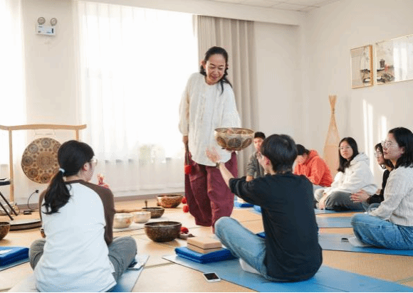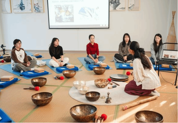 在颂钵音药疗愈课程中,师生通过钵体振动带来的身心共振,释放压力、舒缓情绪;