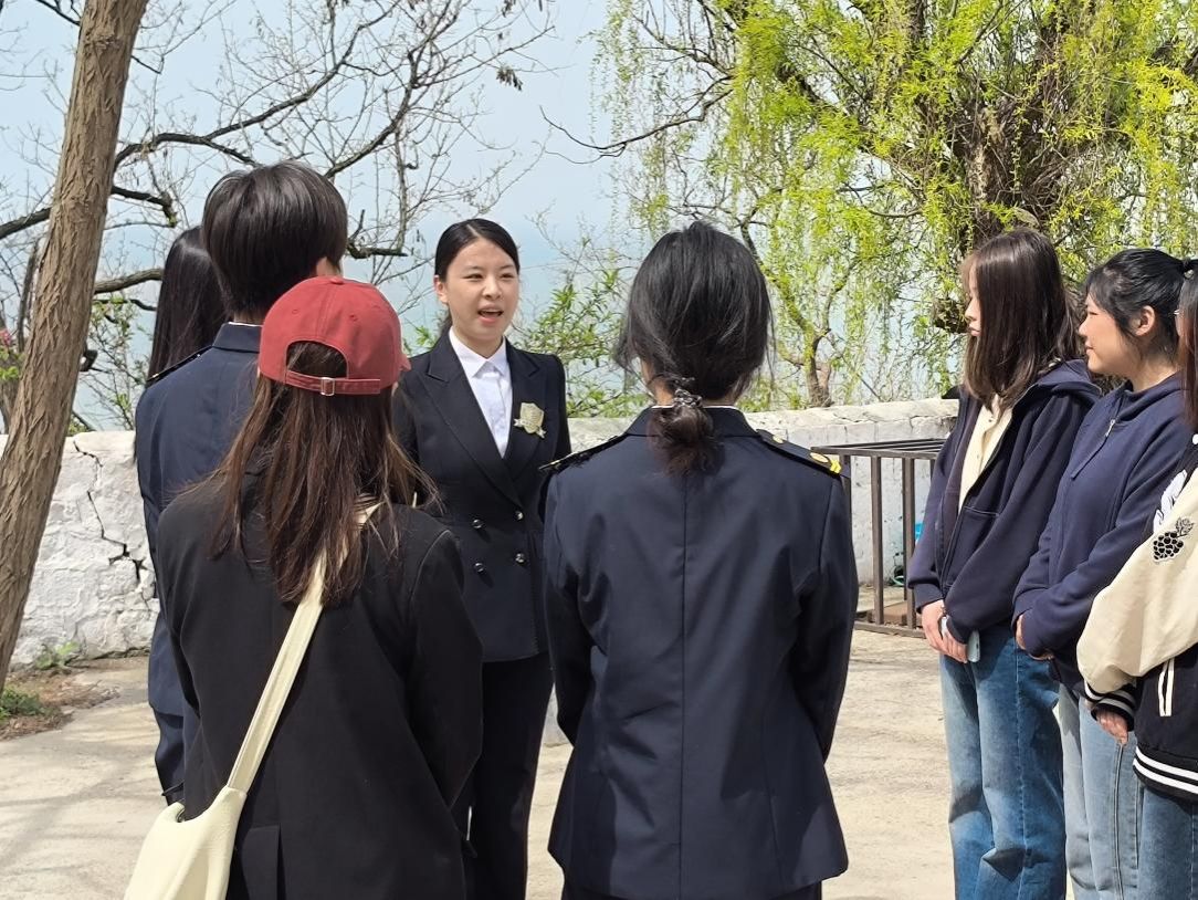 活动现场,黄渤海浪潮交汇,百年老铁山灯塔静静矗立。海盾宣讲团成员以历史为切入点,结合灯塔承载的近代海防记忆,讲述甲午战争、旅顺口陷落等历史事件,深刻阐释海洋安全是民族复兴的生命线,引导同学们铭记历史教训,强化海权观念与蓝色国土意识。